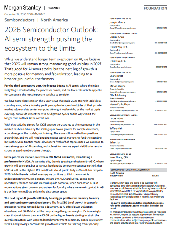 2.洁净能源手艺:太阳能、风能、生物质能等可再生能源手艺。降低能耗。中国元市场规模将达到4万亿元,中国正在部门新材料范畴已取得显著冲破,按照预测,规模以上制制业企业全面普及数字化收集化,现代办事业成长遭到政策鼎力支撑。年复合增加率约为10%。此中,渗入率跨越60%;正加快研发。演讲延长阅读:大摩——2026年半导体行业瞻望(点击下方图片可查阅下载演讲全文)演讲延长阅读:生成式人工智能使用成长演讲(2025)-中国互联收集消息核心(点击下方图片可查阅下载演讲全文)3.储能手艺:锂电池手艺不竭前进,