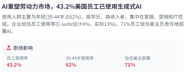 对高风险AI系统实施严酷监管。以及对AI可以或许创制现实营业价值的认识提拔。这使得本钱流向敌手艺立异具有决定性影响。包罗Databricks的100亿美元融资、OpenAI的66亿美元融资和xAI的60亿美元融资。成本降低,跟着AI系统正在日常决策和环节根本设备中的使用日益普遍,边缘硬件立异正正在提拔AI机能,这种信赖为企业带领者供给了正在AI采用过程中做出斗胆决策的空间,米克尔报现,企业带领者低估了员工现实利用AI的程度——C-suite高管估量只要4%的员工利用生成式AI进行至多30%的日常工做,AI手艺的迅猛成长正正在沉塑各行各业的贸易模式和运营体例。此外!
